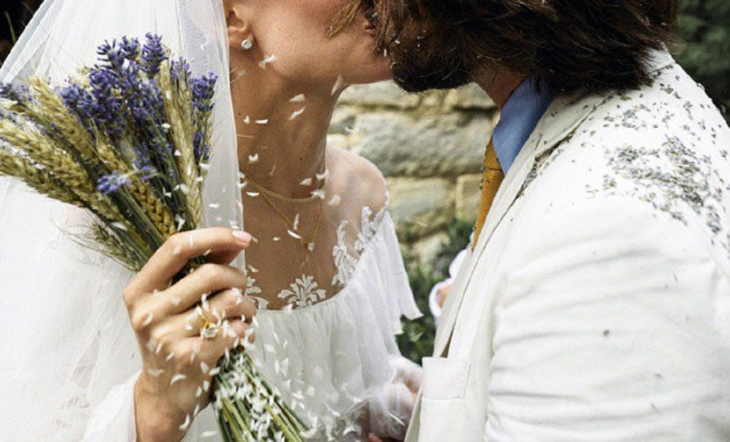 La sposa, corrispettivo nella vita reale di una moderna Marissa Cooper, ha scelto per l’altare uno stupendo vestito Chanel Haute Couture in due pezzi.