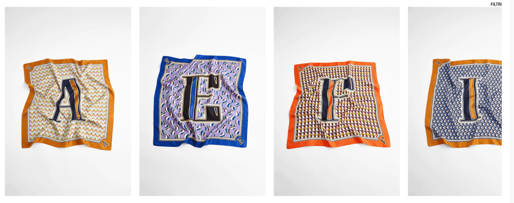 Altro grande ritorno per questa stagione, sono i foulard colorati. A questo proposito sul sito di Zara c’è in questo momento in vendita un’Edizione Limitata di foulard coloratissimi a trame particolari con tutte le lettere dell’alfabeto. La trovate cliccando QUI e vi consiglio di affrettarvi perché non ci metterà molto ad esaurirsi.