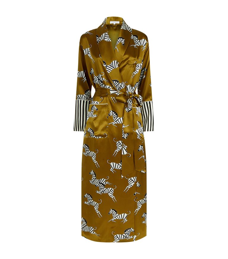 Menzione d’onore per il Kimono in seta senape con le zebre di Olivia Von Halle che si occupa praticamente solo di abbigliamento da casa ma decisamente il più bello che abbiate mai visto. I look casalinghi di Josephine/Anne e la casa in sè mi hanno ricordato un pochino di quando Sharon Stone faceva la matrona milionaria in Ratched. Colore, stile eclettico, pasticcio creativo.